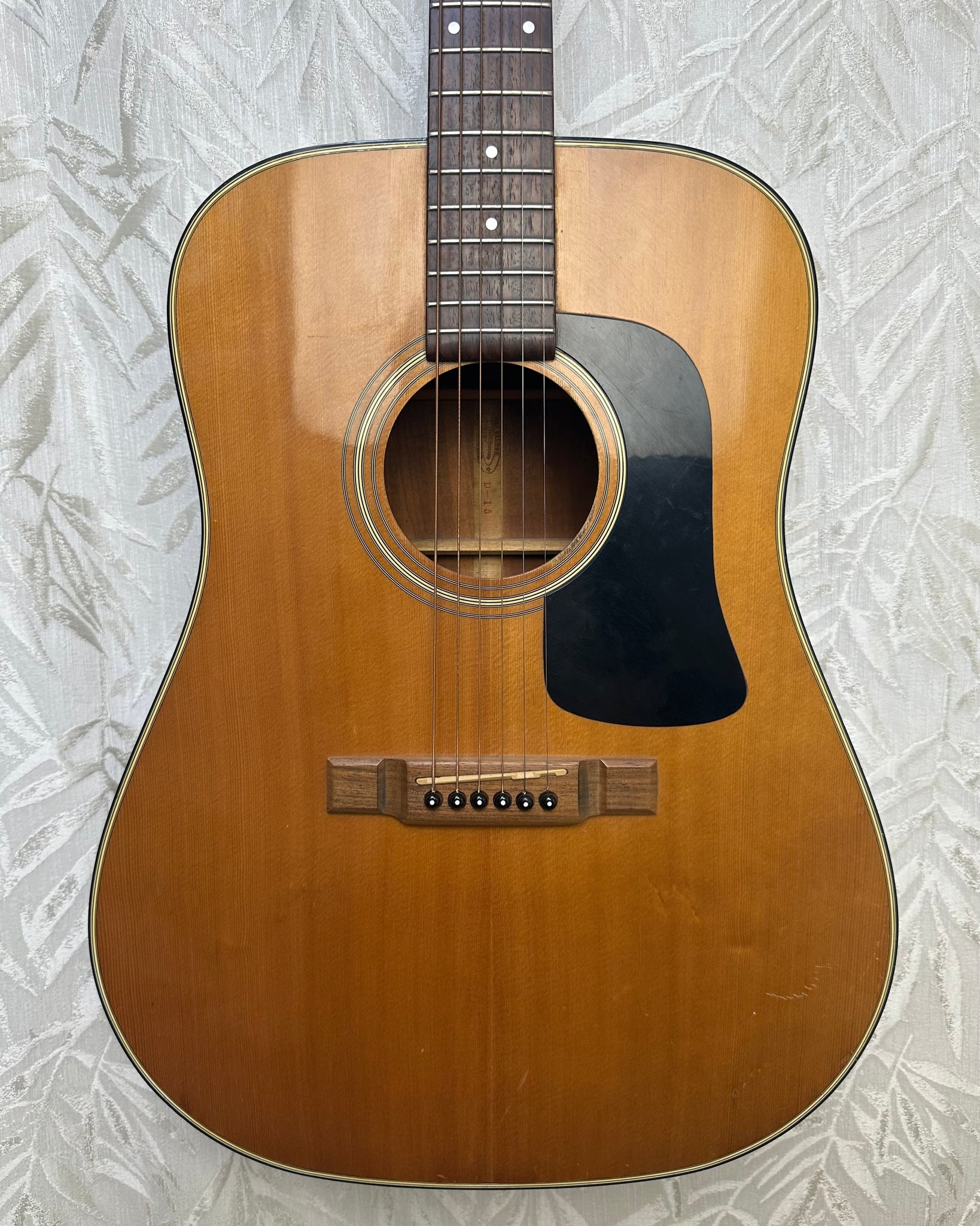 The Washburn D15 from 1981 is a classic Made in Japan dreadnought acoustic that reflects Washburn’s early reputation for solid, value-driven instruments. Built during a period when Japanese factories like Yamaki produced guitars for Western brands, this model is appreciated for its reliable craftsmanship, balanced tone and vintage character that has matured over decades. It’s one of the later Japanese-made Washburn acoustics before production shifted elsewhere, making it a neat pick for players and collectors who enjoy affordable vintage guitars with a seasoned, woody sound.